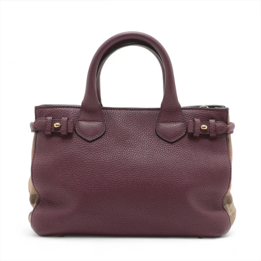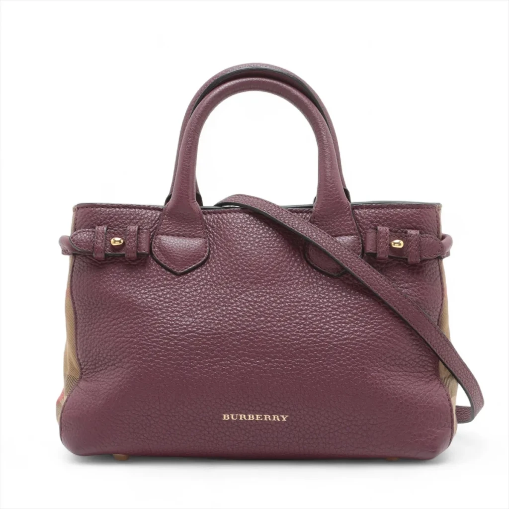 Small Banner in leather x canvas 2 Way Handbag Maroon & Brown
