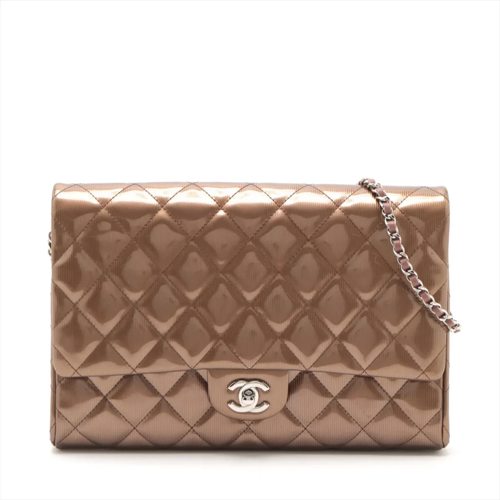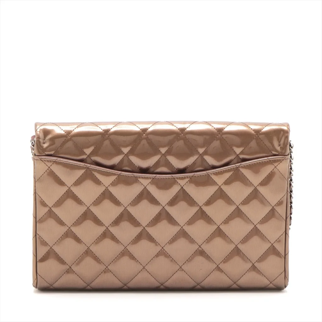 Matelasse Patent Leather Chain Shoulder Bag in Bronze color with Silver Hardware