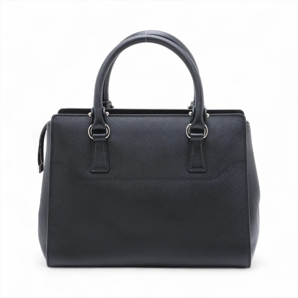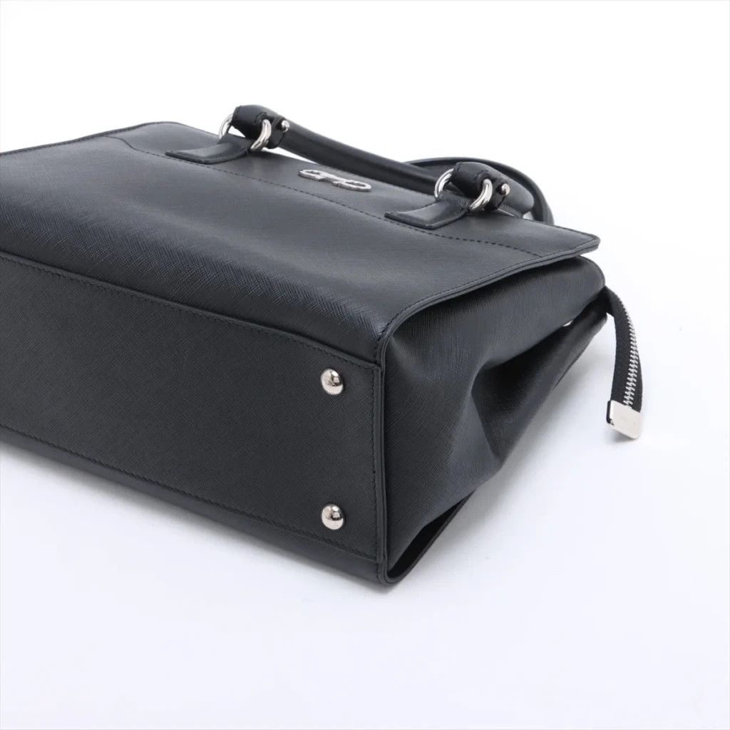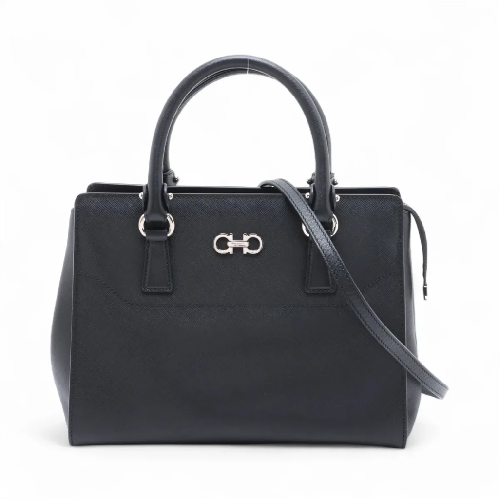 Double Gancini Leather 2 Way Handbag in Black with Silver Color Hardware
