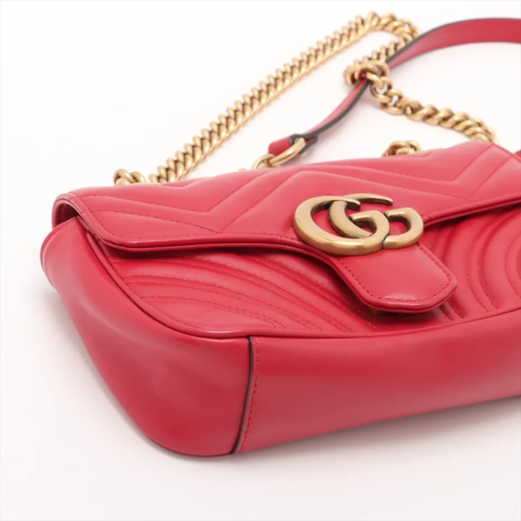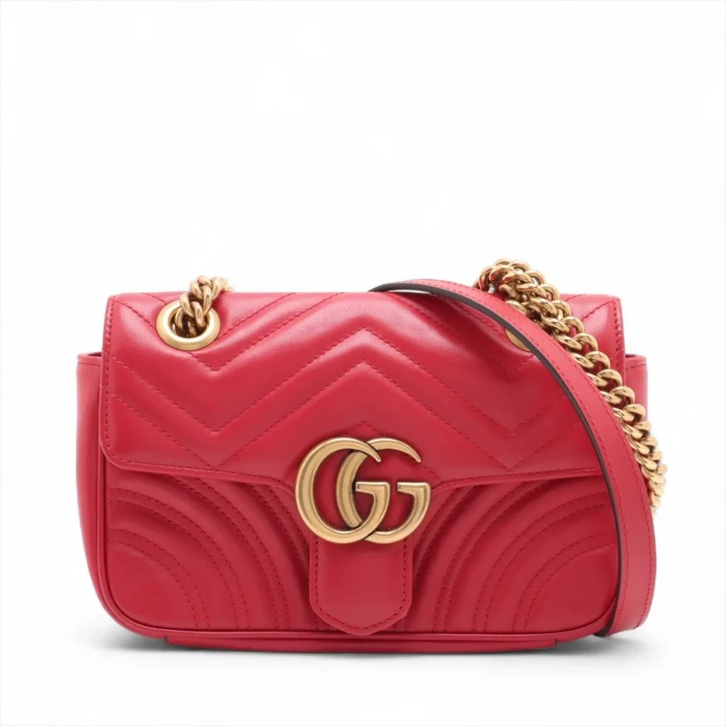GG Marmont Leather Chain Shoulder Bag in Red with Gold Hardware