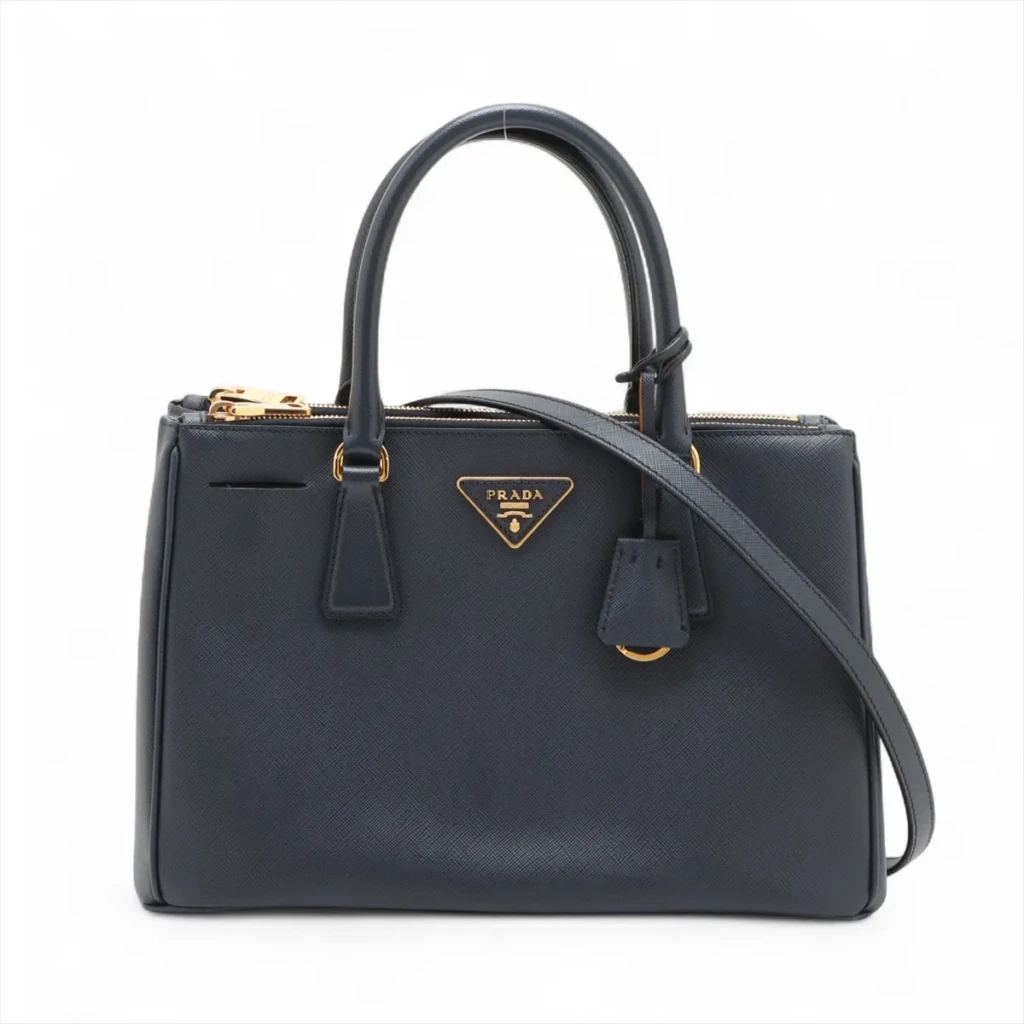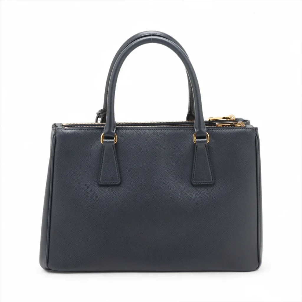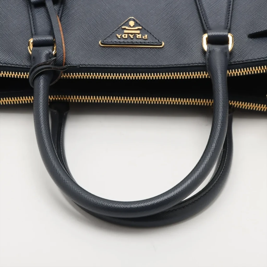 Saffiano Lux Galeria Leather 2 Way Handbag Navy Blue with Gold Hardware