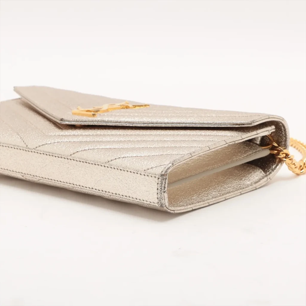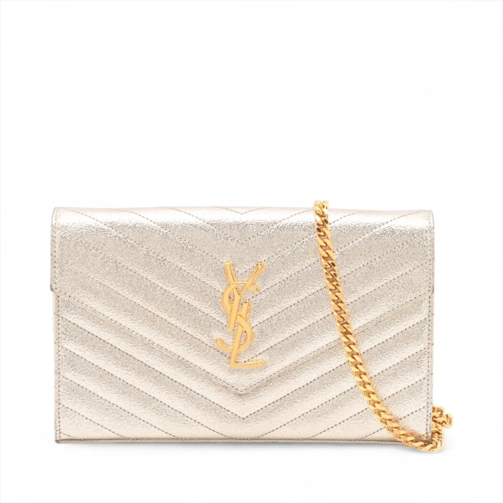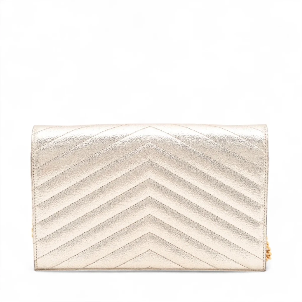 Cassandra Leather Chain Wallet in Gold with Gold Hardware